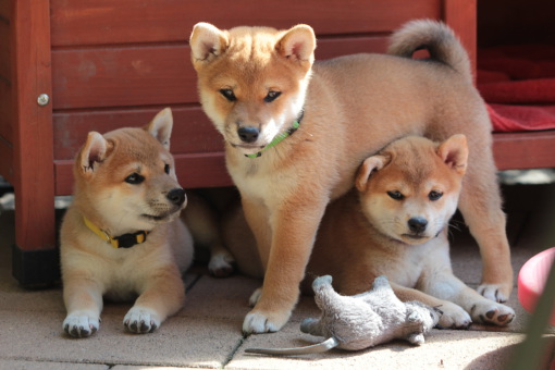 Maru, unser wunderschöner, direkt aus Japan eingeflogener roter Rüde. Er hat Miko‘s Herz erobert. Jumiko, unsere ruhige, erfahrene, liebevolle rote Hündin. Eine harmonische Verpaarung in aufregender Coronazeit.