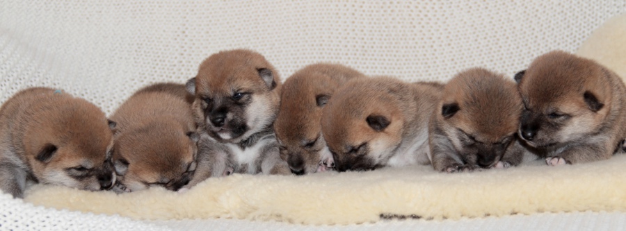 Nachdem wir lange - mehr oder weniger geduldig - gewartet hatten, war es in den frühen Morgenstunden des 5. Juli 2020 soweit, der Vollmond hat sieben rote Shibawelpen auf die Welt gezaubert.